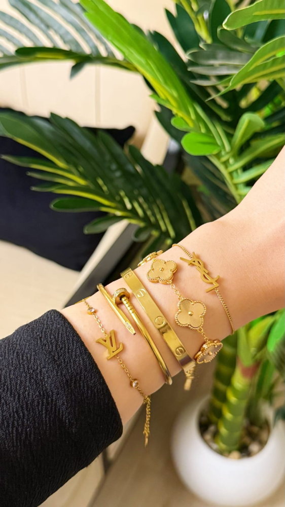 استمتعى بأناقة وفخامة استثنائية مع طقم أساور نسائية ماركة راقي يتكون من 3 أو 5 قطع، مستوحى من أشهر التصاميم العالمية. يجمع الطقم بين البساطة والتميز ليضفي لمسة فريدة على كل إطلالاتك.
